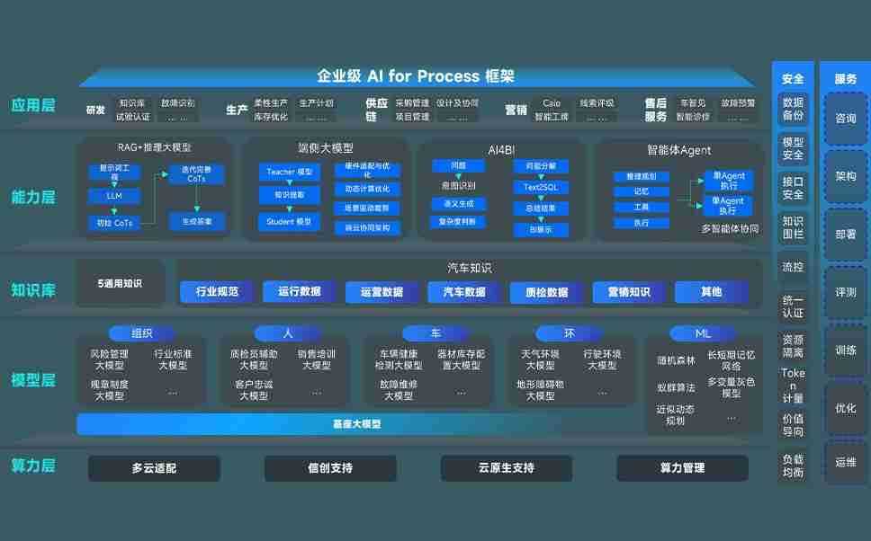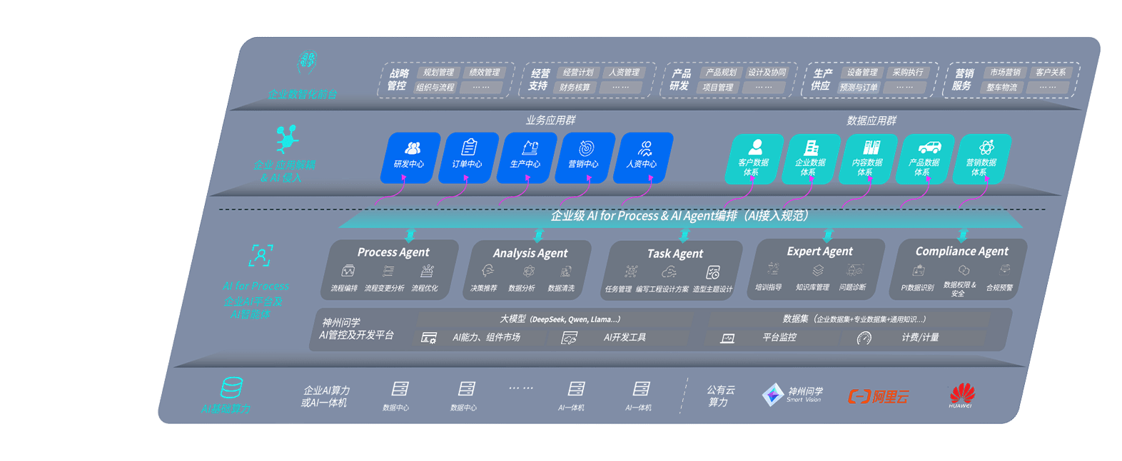 NG娱乐问学智车解决方案是一套基于AI技术的汽车行业智能化系统,,覆盖从底层算力到顶层AI应用的全栈方案。。。。方案由算力层、、、、模型层和应用层组成:算力层,,,方案支持多种一体机配置,,具备云端灵活部署、、、、多云适配以及动态优化计算资源的能力;模型层,,NG娱乐问学平台版提供了企业级AI应用一站式构建与管理平台,,,支持基于后训练强化技术的汽车企业专属模型的训练、、评测和运营;应用层,,,NG娱乐问学DeepSeek版提供包括超级员工、、、、智能招采、、、、智能营销、、、、智能客服、、AI for BI等一系列解决方案,,,,可助力汽车行业实现数字化转型,,让管理更智能、、响应更敏捷。。